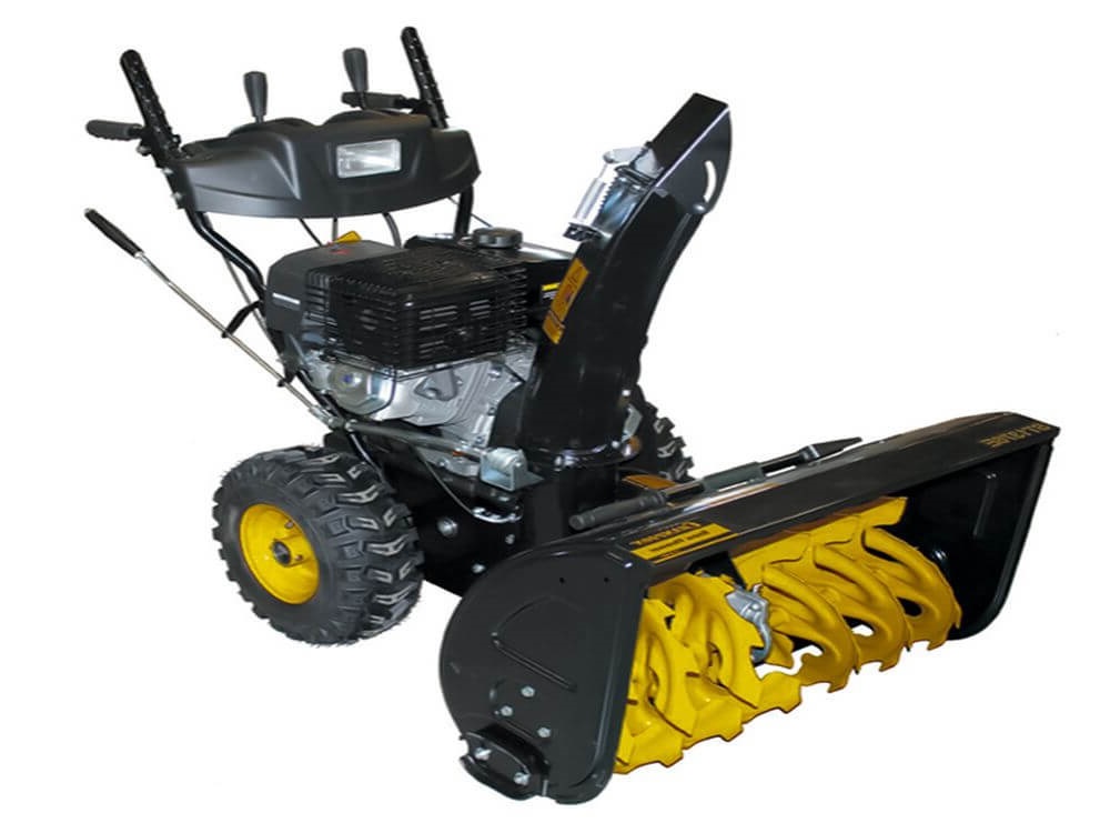 Снегоуборщик CHAMPION ST1376E с возможностью ручного или электрического запуска двигателя оснащен двухступенчатой системой выброса снега. Снегоуборочная машина оборудована бензиновым двигателем G340HE OHV CHAMPION мощностью 13 л.с. Снегоуборщик оснащен вместительным топливным баков объемом 6,5 л, что позволяет длительное время работать без дозаправки. Рабочая ширина захвата составляет 760 мм. Высота забора снега - 545 мм. 6 скоростей вперед и 2 назад позволяют выбрать оптимальный режим работы. Эргономичная рукоятка снегоуборщика снижает напряжение в руках пользователя, имеется обогрев рукояток. Угол выброса снега регулируется как вручную, с помощью рычага, так и дистанционно. Положение желоба также можно настроить при помощи специального рычага или дистанционно. Шнек изготовлен из качественной стали. Вес оборудования 121,5 кг.