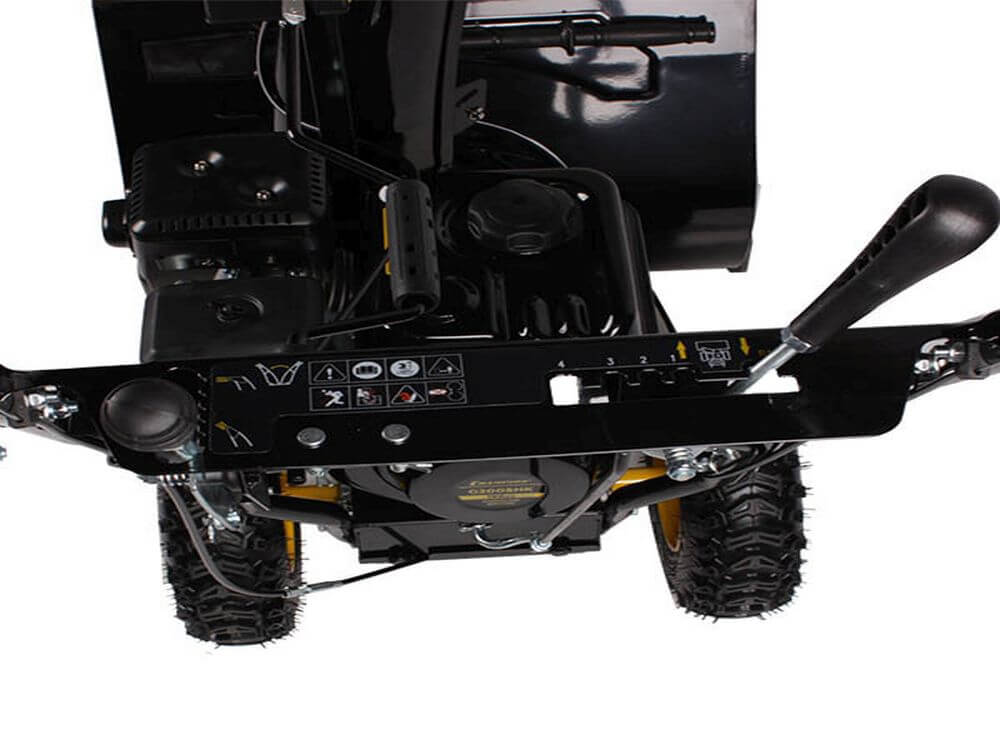 - Угол выброса снега регулируется как вручную, с помощью рычага, так и дистанционно