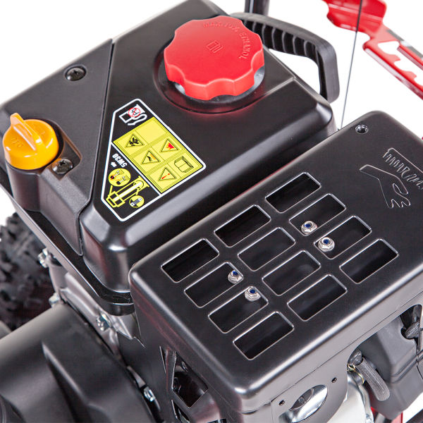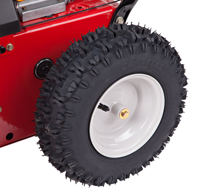 - Снегоуборщик снабжен зимними шинами Snow Hog с самоочищающимся протектором, что обеспечивает эффективную работу даже на обледенелой поверхности