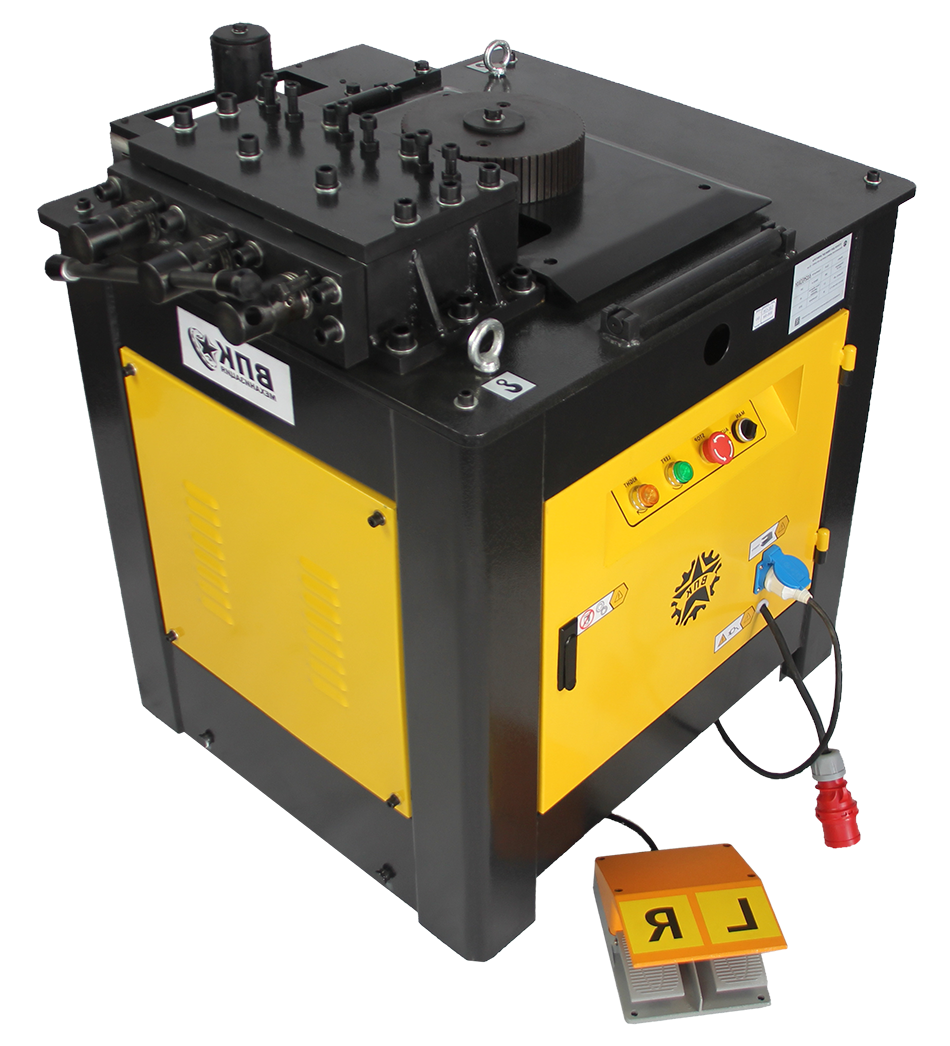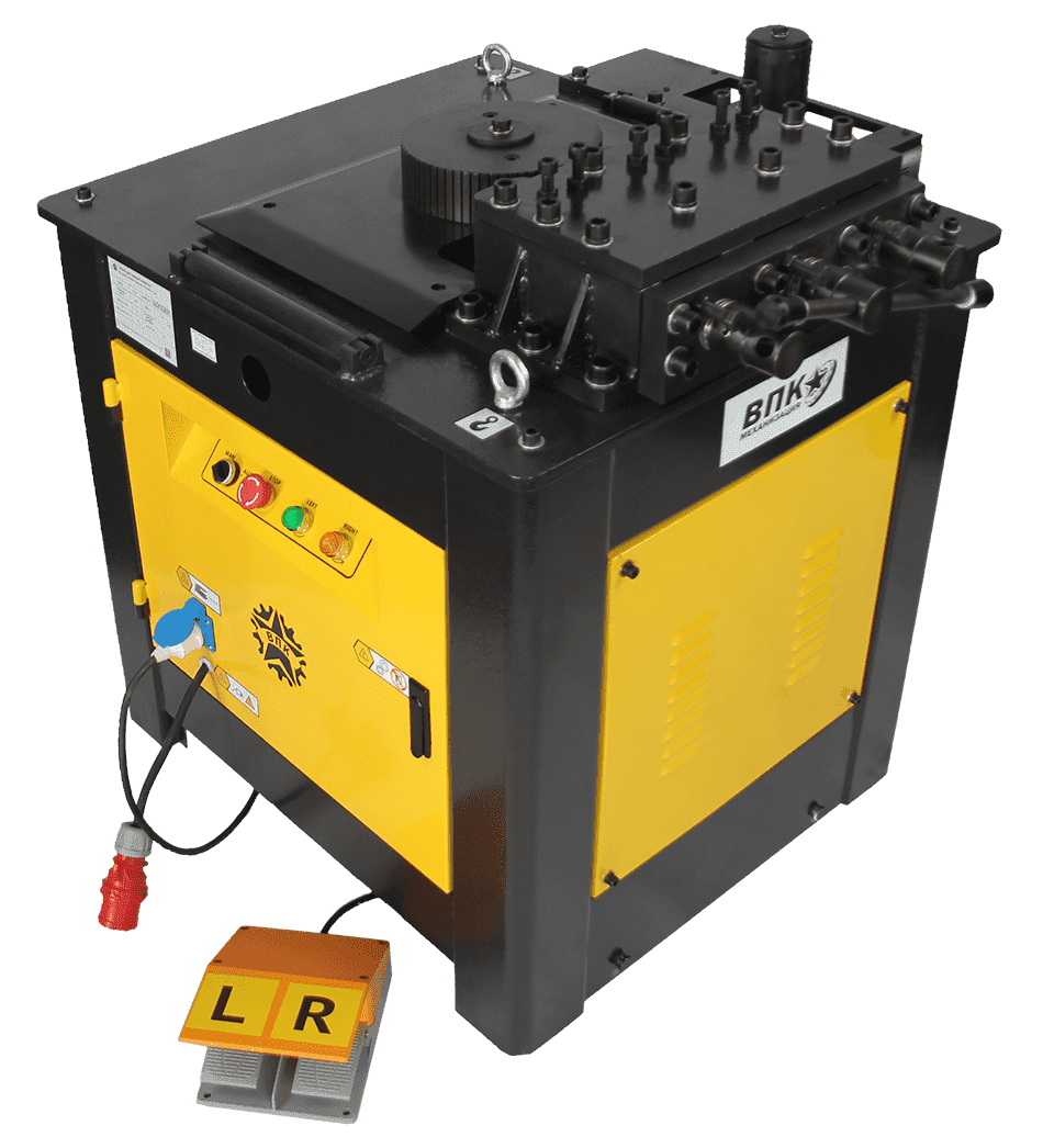 Станок для гибки дуг ВПК ГД-32 мощностью 3,7 кВт способен изгибать деформированные стальные арматурные стержни диаметром 32 мм класса А-I. Станок подходит для работы при температуре от +35 до - 5, при меньших температурах необходимо разогревать масло. Ручное и педальное управление обеспечивают удобство работы для оператора. Двойная педаль управления позволяет задавать направление вращения роликов как влево, так и вправо. Все внутренние части станка загрунтованы и обработаны антикоррозийным покрытием. Благодаря удачной кинематической схеме, потребляемая мощность станка снижена на 30%. Скорость вращения рабочего диска 28 об/мин. Вес оборудования 374 кг. Станок соответствует техническому регламенту Таможенного союза (декларация ЕАС).