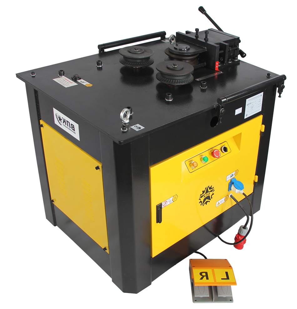 Станок для гибки спиралей ВПК ГС-36 мощностью 4 кВт применяется сгибания арматуры. Арматура затягивается в станок при помощи 2-х подающих роликов. Посредством прижимного ролика регулируется диаметр спирали/дуги. Шаг спирали регулируется при помощи регулируемого упора. Максимально допустимый диаметр арматуры 36 мм. Ручное и педальное управление обеспечивают удобство работы для оператора. Двойная педаль управления позволяет задавать направление вращения роликов как влево, так и вправо. Все внутренние части станка загрунтованы и обработаны антикоррозийным покрытием. Благодаря удачной кинематической схеме, потребляемая мощность станка снижена на 30%. Скорость вращения рабочего диска 15 об/мин. Вес оборудования 488 кг. Станок соответствует техническому регламенту Таможенного союза (декларация ЕАС).
