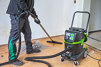 Eibenstock DSS 35MP промышленный пылесос оборудован электронный плавным пуском с отсрочкой включения и выключения. Используется для сухой и для влажной уборки строительных объектов и производственных помещений. Мощность пылесоса составляет 1,2 кВт. Максимальный поток воздуха 74 л/с. На корпусе расположена розетка с автоматическим включением для присоединения электроинструментов. Подходит для вредной пыли с предельными значениями ≥ 0,1 мг/м³. Объем контейнера для пыли составляет 35 л. Регулируемая складная ручка обеспечивает удобную транспортировку. Вес оборудования 16 кг.
