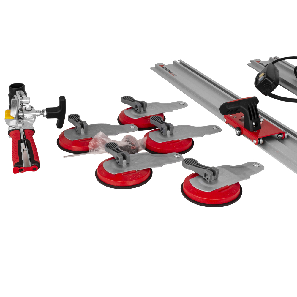 - Сумка: направляющие - 4 шт, каретка с роликом, разломщик плитки, ключ, присоски - 3 шт.