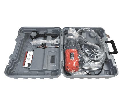 - Машина имеет надежный двухскоростной редуктор, с помощью которого можно подобрать оптимальную скорость сверления для каждого диаметра коронки