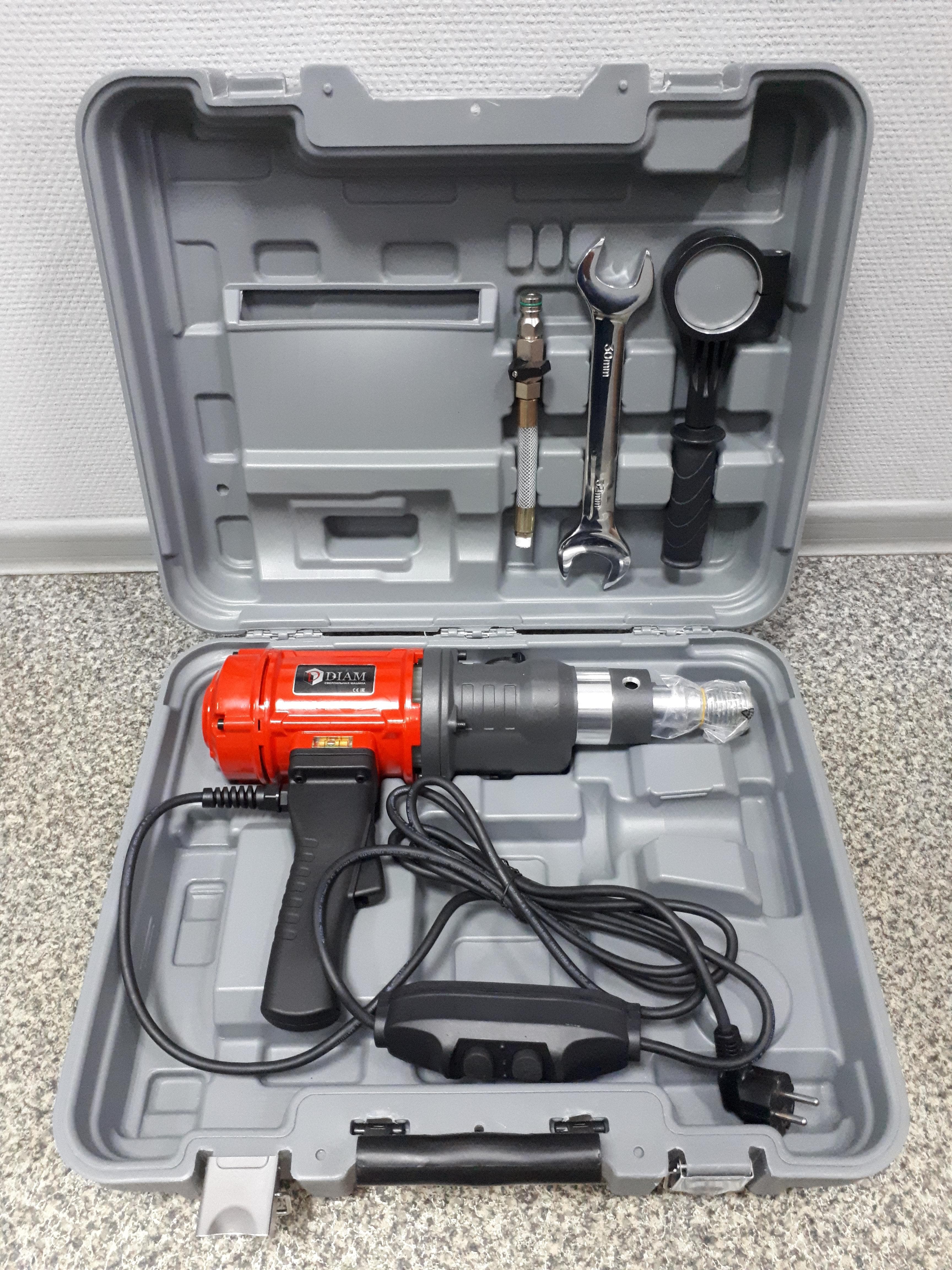 Двухскоростная ручная установка алмазного бурения DIAM ML-102/2H оснащена электрическим двигателем мощностью 1,3 кВт. Применяется для сверления отверстий в бетоне, железобетоне, кирпиче и других строительных материалах. Максимальный диаметр сверления вручную по бетону составляет 62 мм, а по кирпичу 102 мм. В процессе сверления через коронки к месту сверления подается вода для охлаждения и удаления пыли. Сверлильная машина снабжена электрической защитой PRCD от удара электротоком. Установка снабжена двумя рукоятками - основной и вспомогательной. Двигатель имеет два указателя уровня (в двух плоскостях). Устойчивость и усилие подачи обеспечивает плечевой упор. Сверлильная машина может устанавливаться на стойку предназначенную для алмазного сверления.