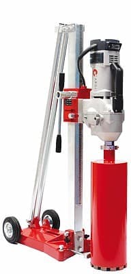 Установка алмазного бурения Cardi 307 сверлит отверстия в бетоне алмазными коронками до 300 мм. Установка состоит из двигателя Cardi T4 300 EL и сверлильной стойки C 520. Мощность 3,4 кВт. Доступно сверление до 45°. Основные сферы примения алмазной установки — прокладка инженерных сетей, санитарно-технических коммуникаций, газопроводов, систем отопления, связи и вентиляции.