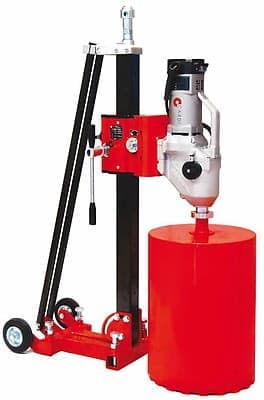 - Стальная наклонная колонна крепится на шарнирах к опорной плите и имеет дополнительный упор для большей жесткости, возможность алмазного сверления отверстий под углом от 0 до 75