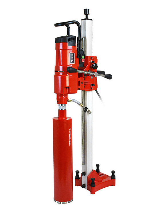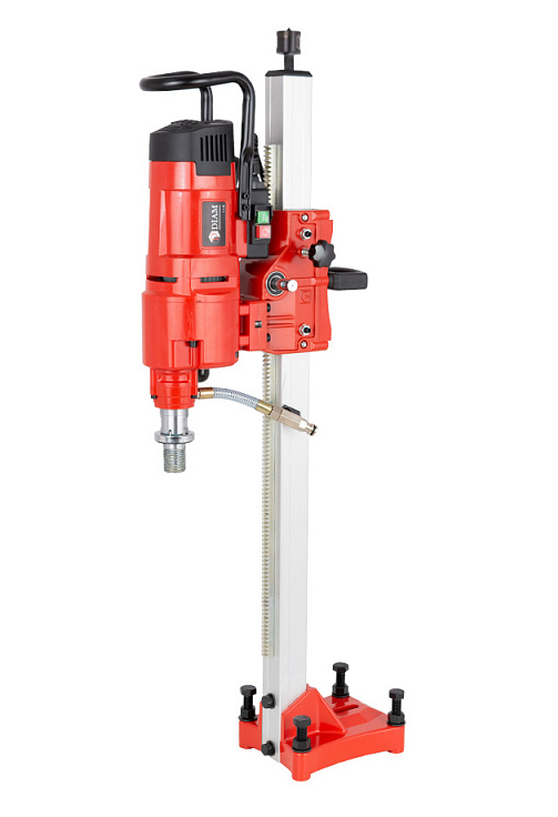 Установка алмазного бурения DIAM ML-180NDC мощностью 3,8 кВт применяется для сверления отверстий в железобетоне, бетоне, кирпичной кладке и других строительных материалах. Установка имеет узел подвода воды с краном и электрическую защиту PRCD от удара электротоком. Диаметр сверления в кирпиче и блоке до 180 мм, в бетоне до 160 мм. Установка оборудована функцией DIGITAL CONTROL - цифровым дисплеем отображающим данные о работы двигателя. Вес оборудования 24 кг.