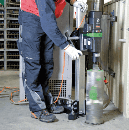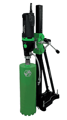Установка алмазного бурения Eibenstock DBE 182 сверлит отверстия в железобетоне, кирпиче, натуральном камне и асфальте до 202 мм. Наличие трехскоростного редуктора обеспечивает оптимальное забуривание и крутящий момент при сверлении отверстий различных диаметров. Мощность буровой установки — 2,3 кВт. Доступно сверление под углом 45˚. Быстрое и прецизионное точечное сверление благодаря комбинированному шпинделю со встроенным разъемом для центрирующего стержня. Надежная конструкция алмазной установки и PUR-кабель в оболочке из полиуретана обеспечивают высокую износостойкость в любых условиях эксплуатации.