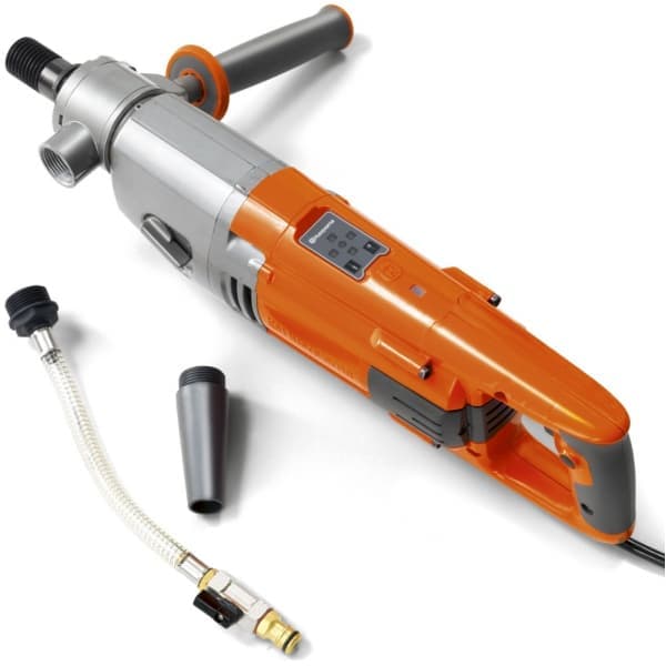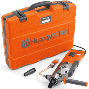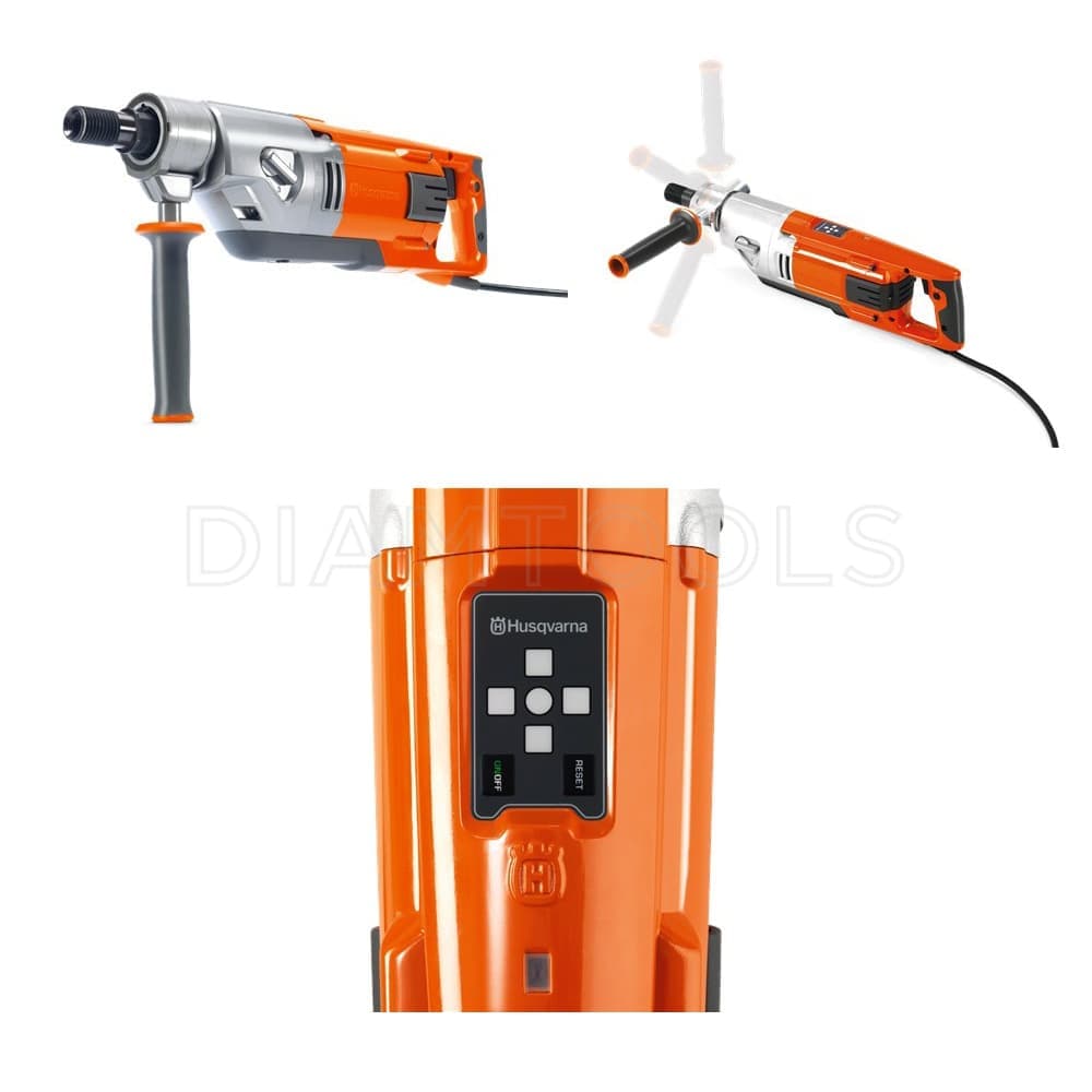 Бурильная машина Husqvarna DM 220 мощностью 1,8 кВт, работает от напряжения 220 В. Используется для бурения отверстий в железобетоне, бетоне, кирпиче, асфальте, граните и натуральном камне диаметром до 150 мм со стойкой и до 80 мм вручную. Машина среднего размера, может устанавливаться на стойку DS 250 из алюминия с колесами на опорной плите для вакуумного крепления или анкеровки. Для лучшего позиционирования передняя рукоятка регулируется на 360°.