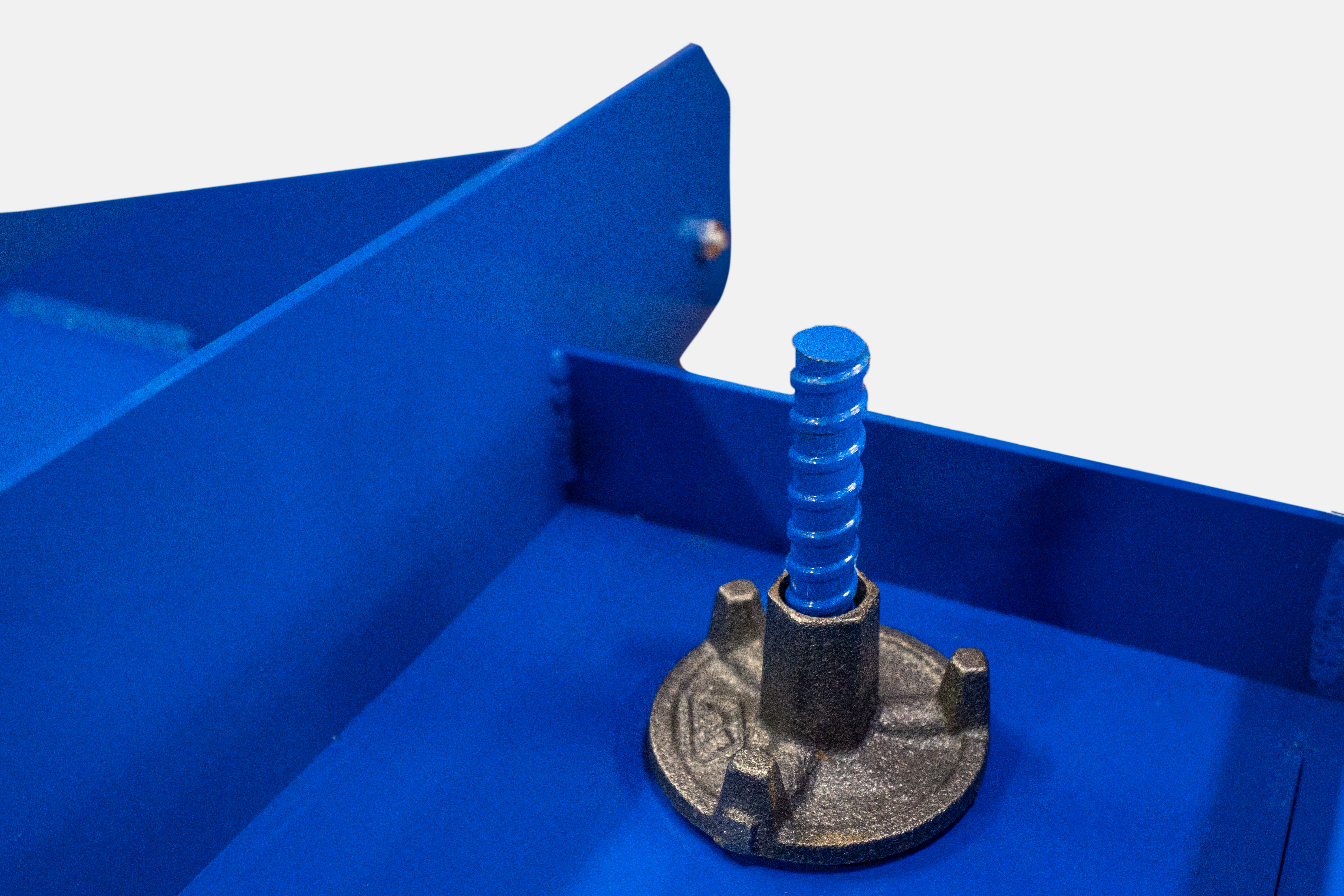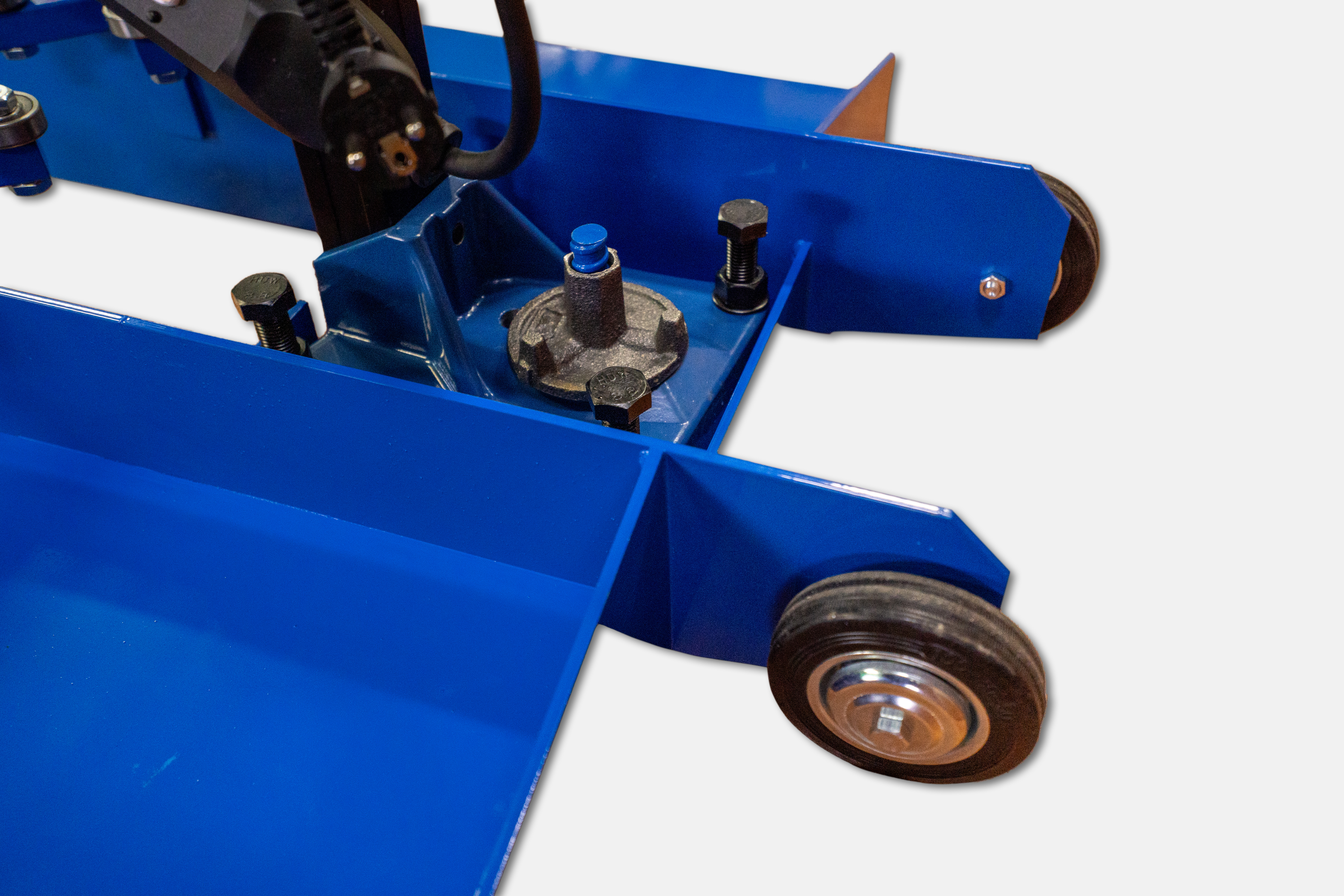 - К станине крепится опорная плита для дополнительной устойчивости. Операторы становятся на платформы, удерживая своим весом станину с мотором в неподвижном положении даже при высокой нагрузке