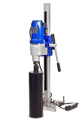 Установка алмазного бурения Proalmaz PRO200LED-N мощностью 2,8 кВт и скоростью вращения до 600 об/мин используется для изготовления горизонтальных и вертикальных отверстий диаметром до 250 мм под прямым углом. Система светодиодных индикаторов показывает оптимальный уровень нагрузки двигателя и помогает выбрать режим сверления. Устройство отключения PRCD предотвращает от удара током в случае повреждения изоляции провода.