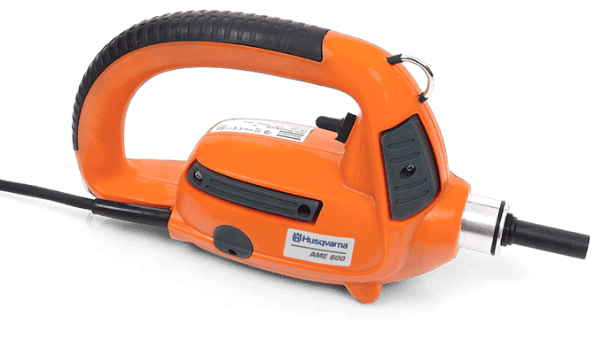 Глубинный вибратор Husqvarna AME 600 состоит из универсального электродвигателя мощностью 0,59 кВт расположенного внутри пластмассового корпуса, изготовленного из укрепленного стекловолокном поликарбоната. Малый вес и простой дизайн делают его легким в эксплуатации. Для начала работ необходимо подключить гибкий вал с вибробулавой серии HA через быстроразъемную муфту и вставить кабель в розетку. Длина кабеля 5 м. Запатентованная прорезиненная рукоятка уменьшает вибрацию идущую на руки оператора. Для повышения комфорта работы и удобства, привод поставляется с быстроразъемным соединением и плечевым ремнем. Идеален для небольших по объему работ. Вес оборудования 1,9 кг.