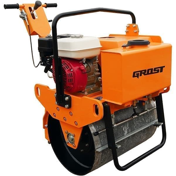 Виброкаток GROST VR300S с одним вальцом используется для уплотнения асфальта, гравия и несвязных грунтов в ограниченных пространствах. Применяется для устройства узких пешеходных дорожек и отливов вдоль фундаментов домов. Оснащен бензиновым двигателем HONDA GX160 мощностью 5,5 л.с. Ширина обработки составляет 600 мм. Имеет плавную регулировку скорости от 0 до 2,8 км/час. Вибрация включается вручную при помощи рычага на рукоятке управления. Для возвратного перемещения предусмотрен реверс. Каток комплектуется пластиковым 15-литровым баком для воды.