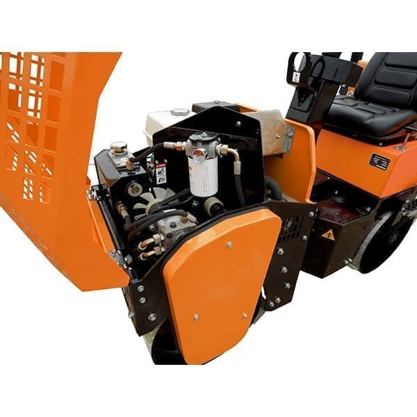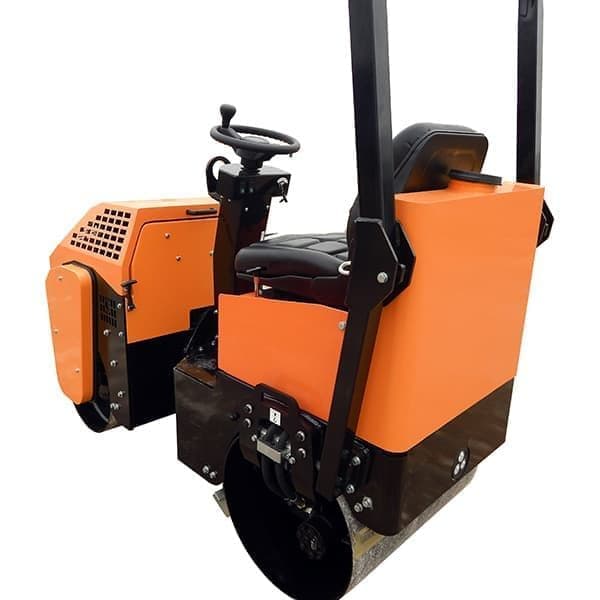 Виброкаток GROST VR1000 с сидением для оператора применяется для послойной обработки гравия и асфальтобетона. Ширина обработки составляет 700 мм. Каток оборудован бензиновым двигателем Honda GX390 мощностью 13 л.с. Компактные габариты и маневренность позволяют эксплуатировать оборудование при работе в стесненных местах, таких как въезды во дворы, небольшие площадки, тротуары и подъезды к домам. Регулировка скорости от 0 до 4 км/ч обеспечивается плунжерным насосом, а привод вальцов двумя циклоидными гидравлическими моторами. Каток оснащен электрической системой водоорошения с удобным запуском с приборной панели. Каток комплектуется пластиковым 48-литровым баком для воды. Светодиодные фары облегчают эксплуатацию в темное время суток.