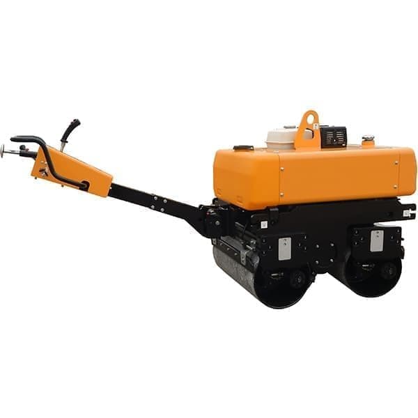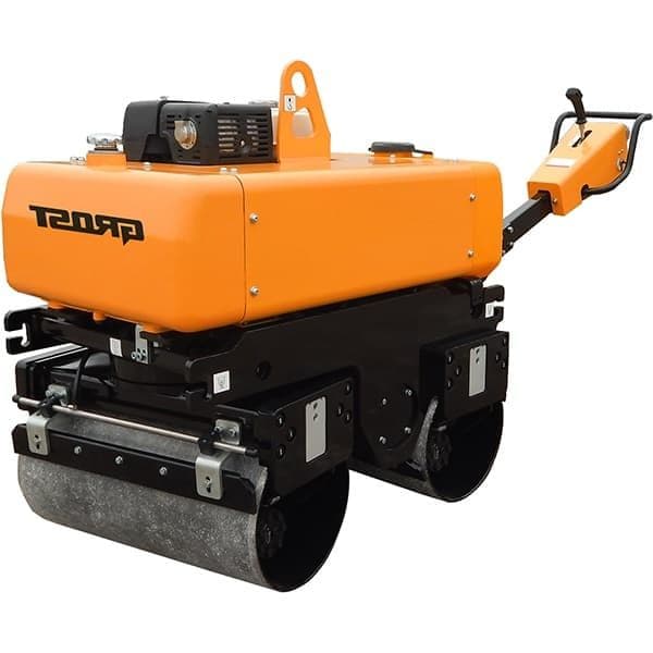 Виброкаток GROST VR500 двухвальцовый оснащен четырехтактным двигателем с воздушным охлаждением Honda GX390 мощностью 13 л.с. Особенностью катка является поворотный передний валец, гидравлический привод которого обеспечивает поворот на угол до 15º простым нажатием кнопки на рукоятке управления. Применяется для уплотнения зернистого грунта и асфальтобетона при ремонте небольших участков дорог, обочин, тротуаров. Ширина обработки составляет 680 мм. Плавная регулировка скорости движения от 0 до 3,5 км/ч обеспечивается мощным плунжерным насосом SAUER. Вибрация на заднем вальце включается нажатием кнопки на рычаге управления. Каток комплектуется пластиковым 38-литровым баком для воды. Оросительная трубка выполнена из нержавеющей стали и не подвержена коррозии. Каток оснащен кронштейном для подъема.