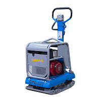 Реверсивная виброплита CIMAR CPC-350 оборудована бензиновым двигателем Honda GX390 мощностью 13 л.с. Применяется для уплотнения различных типов грунтов. Размер плиты 860х485 мм. Основание и установочная плита двигателя сделаны из высокопрочного чугуна. Для удобства оператора рукоятка снабжена противоскользящей накладкой. Емкость топливного бака 4,7 л. Максимальная глубина уплотнения 900 мм. Центробежная сила 45 кН. Наличие реверса позволяет осуществлять прямой и обратный ход. Вес оборудования 330 кг.