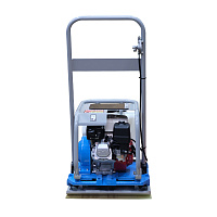 Виброплита CIMAR CPC-95-H оборудована бензиновым двигателем Honda GX160 мощностью 5,5 л.с. Применяется для уплотнения различных типов грунтов, во время укладки дорожного полотна и оборудования систем коммуникаций строящихся зданий и сооружений. Сочетание центробежной силы 15 кН и частоты вибрации 100 Гц обеспечивают эффективное уплотнение грунта на глубину до 300 мм. Габариты основания плиты 525х500 мм. Основание и установочная плита двигателя выполнены из высокопрочного чугуна. Транспортировочные колеса облегчают перемещение. 15-литровый бак для воды позволяет использовать виброплиту при укладке асфальта. Вес оборудования 95 кг.