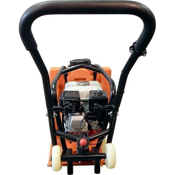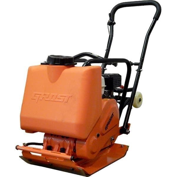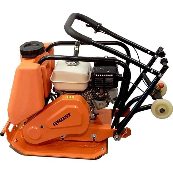 Виброплита GROST VH 60 прямого хода используется для уплотнения уложенного асфальта, гравия, песка. Максимальная глубина уплотнения составляет 250 мм. Виброплита оборудована бензиновым двигателем Honda GX 160 мощностью 5,5 л.с и водяным баком с краном. Плита имеет небольшой вес 71,5 кг. Узкое основание 510х370 мм позволяет эксплуатировать плиту в траншеях. Специальные усиления, вваренные в корпус, предотвращают расшатывание конструкции. Транспортировочные колеса перемещаются на заднюю часть, не создавая помех оператору. Для компактности и удобства хранения подъемная рама складывается.