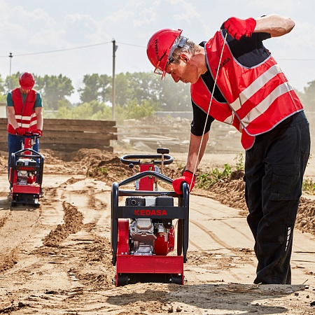 Реверсивная виброплита Kedasa MSH160‑4 оборудована бензиновым двигателем Honda GX160 мощностью 5,5 л.с и подходит для уплотнения гравия, песка и смешанных грунтов вдоль фундаментов и стен, для чернового и чистового заглаживания бетонных поверхностей. Подходит для выполнения ремонта и обслуживания проезжих частей, тротуаров и автомобильных стоянок. Размер плиты 630×400 мм. Глубина уплотнения сыпучих материалов до 500 мм. Рабочая скорость 25 м/мин. Производительность 570 м²/ч. Плита укомплектована встроенными колесами и складывающейся ручкой для удобства транспортировки. Защитный кожух предохраняет оборудование от песка и грязи. Вес оборудования 149 кг.