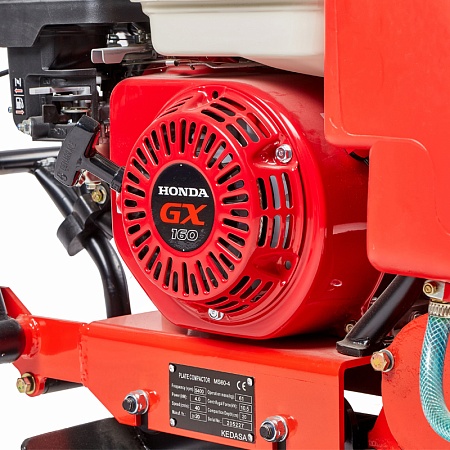 Виброплита Kedasa MS60-4 оборудована бензиновым двигателем Honda GX160 мощностью 5,5 л.с и подходит для небольших по объему работ: уплотнения гравия, песка и смешанных грунтов вдоль фундаментов и стен, для чернового и чистового заглаживания бетонных поверхностей. Отлично справится с работой в узких и труднодоступных местах. Размер плиты 500×360 мм. Глубина уплотнения сыпучих материалов до 200 мм. Рабочая скорость 40 м/мин. Плита укомплектована встроенными колесами и складывающейся ручкой для удобства транспортировки. Защитный кожух предохраняет оборудование от песка и грязи. Вес оборудования 62 кг.