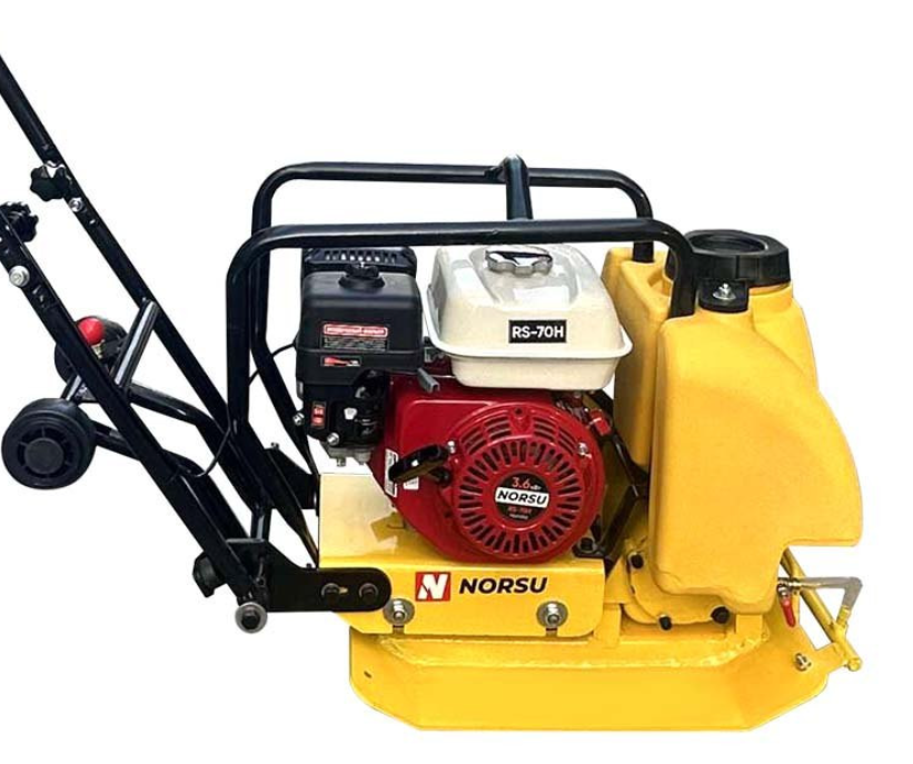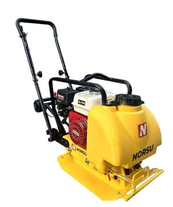 Виброплита NORSU RF-70TH применяется для работ по уплотнению различных грунтов глубиной до 200 мм. Плита оснащена бензиновым двигателем GX160 мощностью 6,5 л.с. Емкость топливного бака 3,6 л, расход топлива 2,3 л. Центробежная сила 10,5 кН. Применение плиты при укладке тротуарной плитки возможно при использовании полиуретанового коврика (приобретается отдельно). Габариты подошвы 520×370 мм. Колеса облегчают транспортировку оборудования. Плит оснащена баком для воды. Вес оборудования 70 кг.