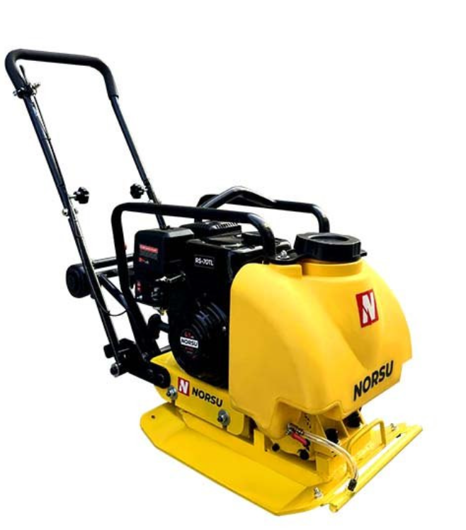 Виброплита NORSU RF-70TL применяется для работ по уплотнению различных грунтов глубиной до 200 мм. Плита оснащена бензиновым двигателем Loncin H200F мощностью 5,4 л.с. Емкость топливного бака 2,5 л, расход топлива 0,906 л. Центробежная сила 10,5 кН. Применение плиты при укладке тротуарной плитки возможно при использовании полиуретанового коврика (приобретается отдельно). Габариты подошвы 520×370 мм. Колеса облегчают транспортировку оборудования. Плит оснащена баком для воды. Вес оборудования 70 кг.