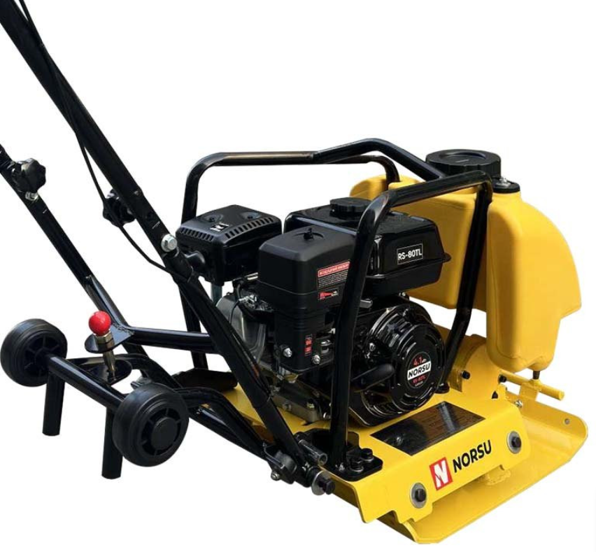 Виброплита NORSU RF-80TL применяется для работ по уплотнению различных грунтов глубиной до 300 мм. Плита оснащена бензиновым двигателем Loncin H200F мощностью 5,4 л.с. Емкость топливного бака 2,5 л, расход топлива 2,252 л/ч. Центробежная сила 13,5 кН. Применение плиты при укладке тротуарной плитки возможно при использовании полиуретанового коврика (приобретается отдельно). Габариты подошвы 505×485 мм. Колеса облегчают транспортировку оборудования. Плит оснащена баком для воды. Вес оборудования 80 кг.