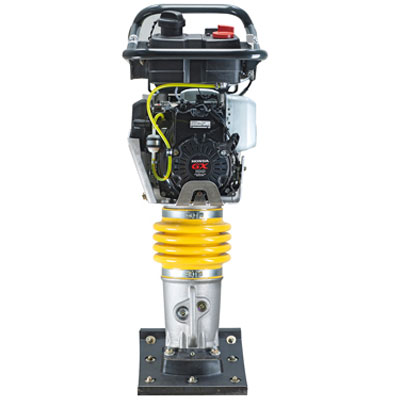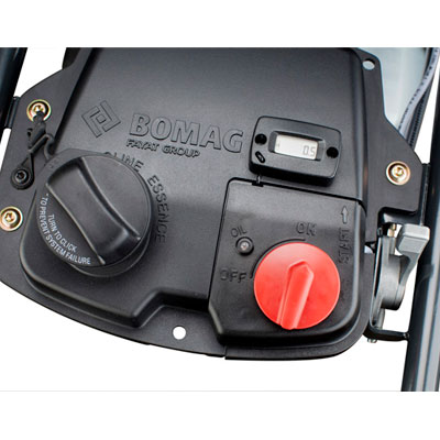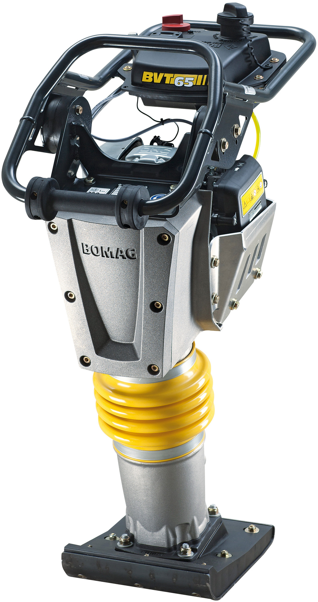 Вибротрамбовка Bomag BVT 65 оборудована бензиновым двигателем Honda GX 100 мощностью 3,1 л.с. Трамбовка применяется для уплотнения грунта и асфальтовых покрытий. Двигатель имеет надежную защиту от механических повреждений и находится под специальной крышкой. Герметичная конструкция позволяет работать с песком. Емкость топливно бака 3 л, а расход топлива 0,9 л/час. Размер подошвы 335х280 мм. Сила удара составляет 15 кН. Вибротрамбовка имеет специальную транспортировочную ручку, которая упрощает процесс эксплуатации и транспортировки. Вес оборудования 66 кг.