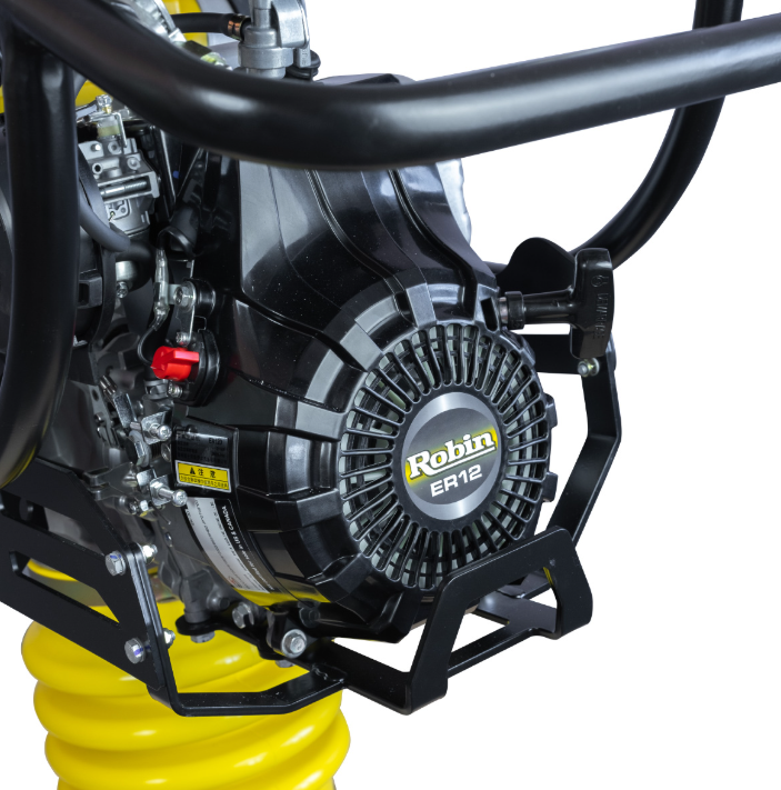 - Сертифицированный двигатель Robin ER12 мощностью 4 лошадиных силы разработан специально для вибрационных агрегатов. Наличие продвинутого воздушного фильтра и современного глушителя выделяет этот двигатель среди аналогов на рынке, делая его одним из наиболее эффективных бензиновых моторов;