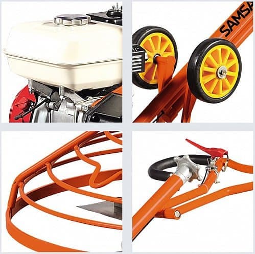 Затирочная машина SAMSAN WPT 361 ST оборудованная мощным бензиновым двигателем Honda GX270 9 л.с., предназначена для заглаживания цементнобетонных смесей на поверхностях малой и средней площади. Ширина обработки составляет 900 мм. Компактные габариты позволяют эксплуатировать машину в труднодоступных местах: вдоль стен, тротуаров и колонн. В комплект входят транспортировочные ролики. Складная ручка облегчает управление и хранение. Сверхпрочная коробка передач обеспечивает долгий срок работы оборудования. Угол наклона лопастей легко контролируется, благодаря регулируемому винту. При потери контроля управления оператором, автоматический выключатель отключит двигатель.